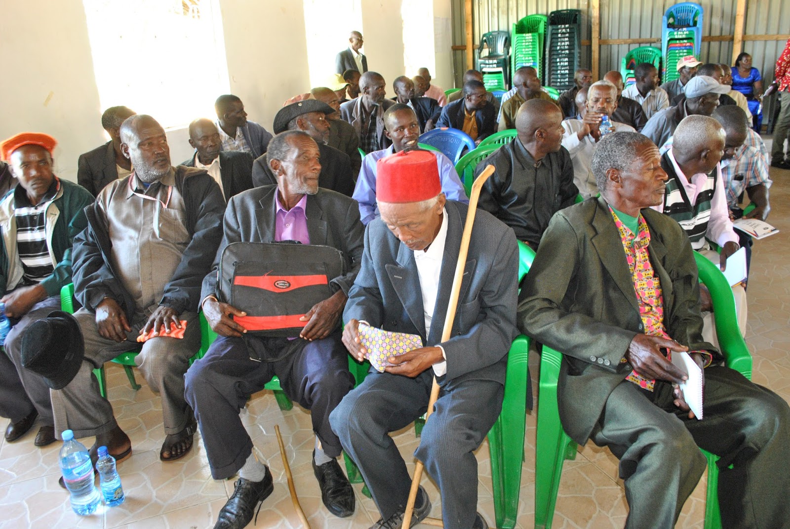 Wazee wakiwa wanafuatilia maelezo kutoka kwa watalaam wa amref juu ya unyago bila ukeketaji.